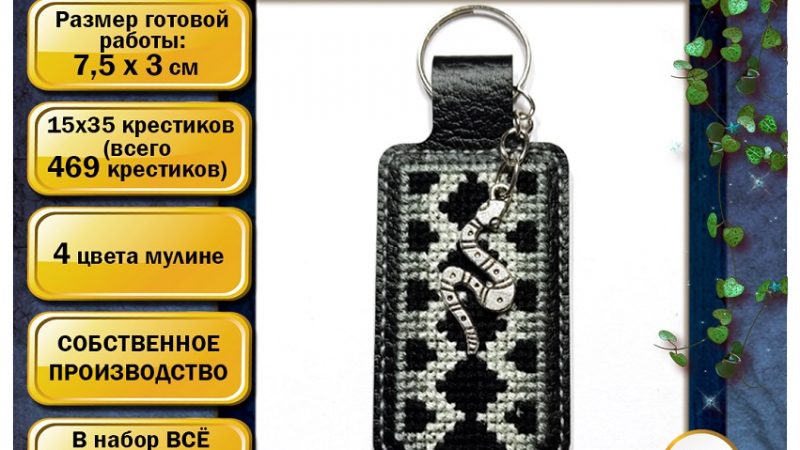 Набор для изготовления брелка с перфорацией под вышивку. В качестве основы используется шикарный Итальянский переплётный кожзам. Размер готовой работы: 3 х 7,5 см Размер в крестиках: 15 х 35 крестиков (всего 469 крестиков) Кол-во цветов: 4 Материал основы: кожзам чёрного цвета с тиснением «кожа» Производитель: GoldenHands.me (Екатеринбург) В состав набора входит: * основа с перфорацией … Читать далее ‘Набор Брелок «ЗМЕЙКА»