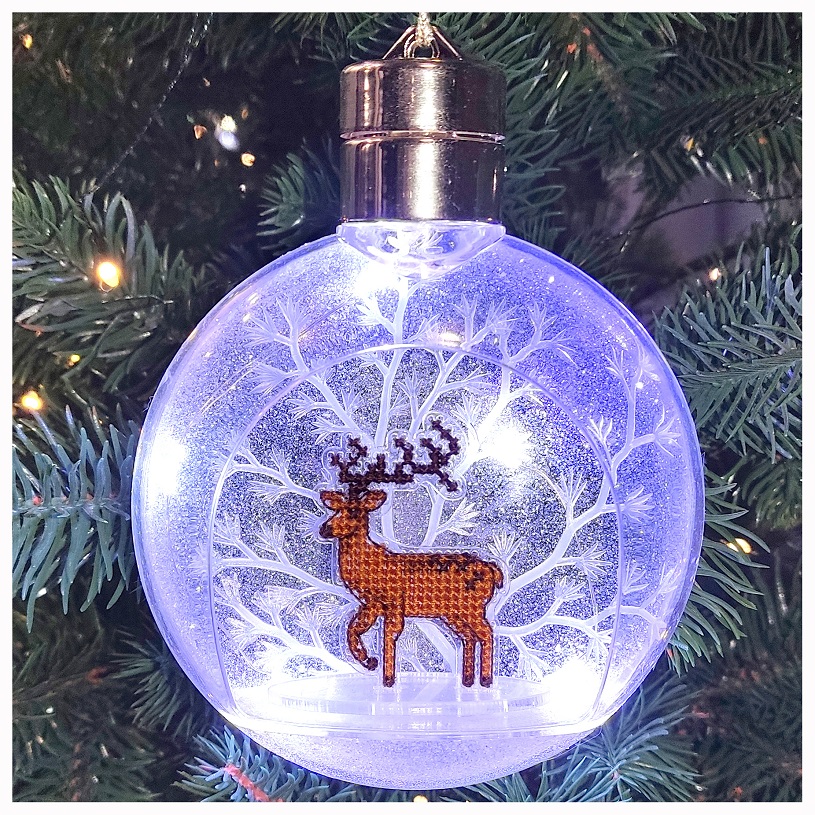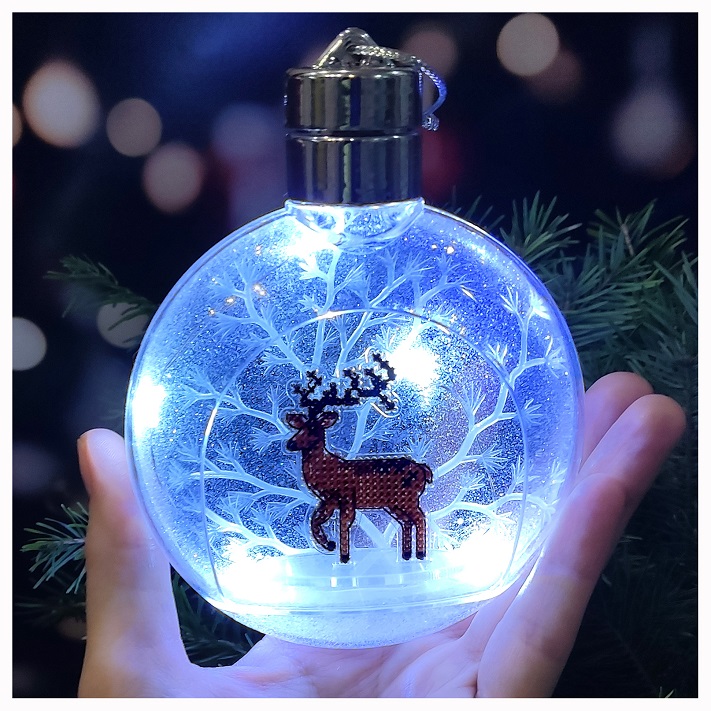 Набор для создания новогоднего светящегося шара с вышитым элементов на прозрачном пластике «ОЛЕНЬ»