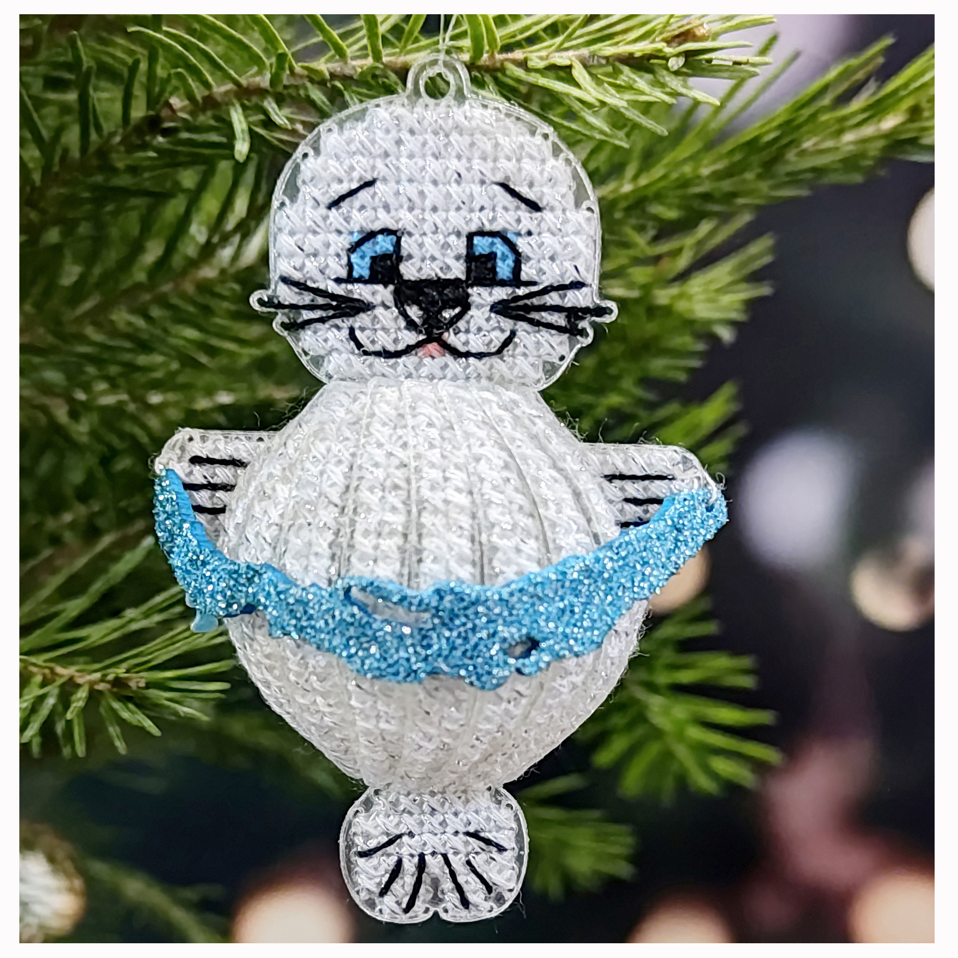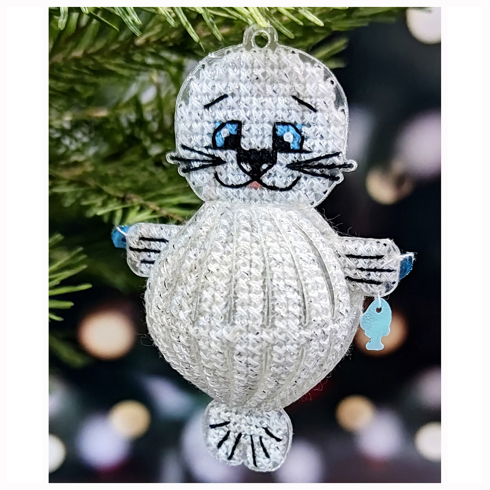 Набор для вышивки двухсторонней объёмной новогодней игрушки на прозрачном тонком пластике — НЕРПА.