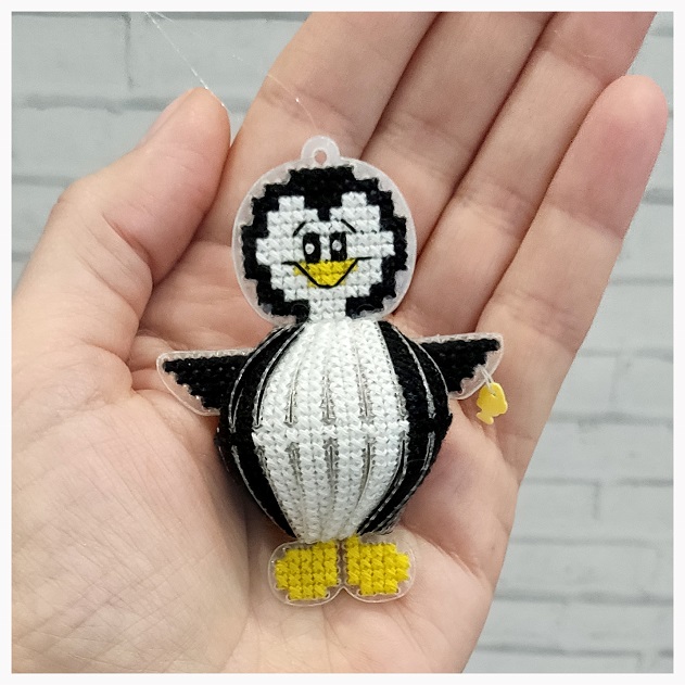 Набор для вышивки двухсторонней объёмной новогодней игрушки на прозрачном тонком пластике — ПИНГВИН.
