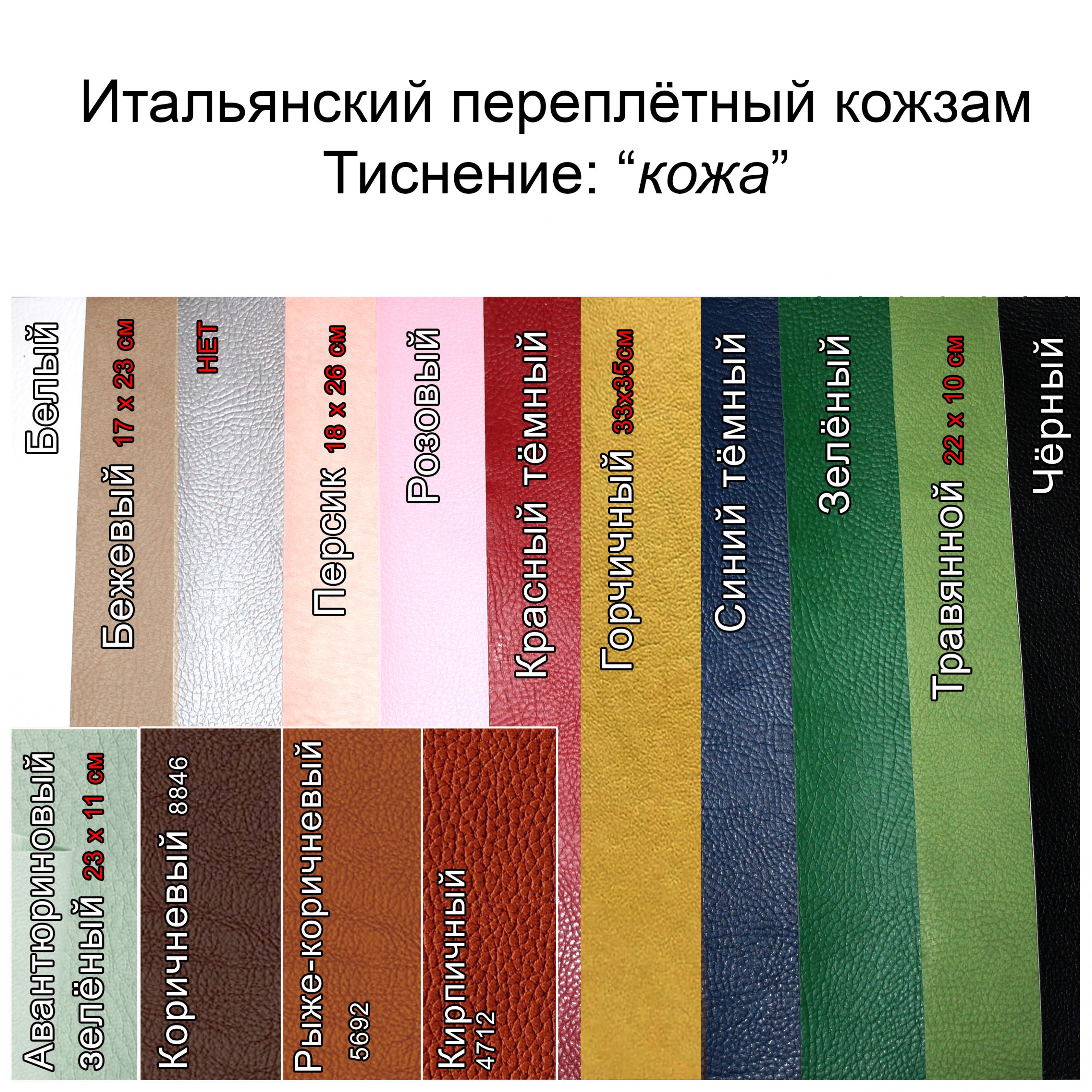 В качестве основы используется шикарный Итальянский переплётный кожзам.