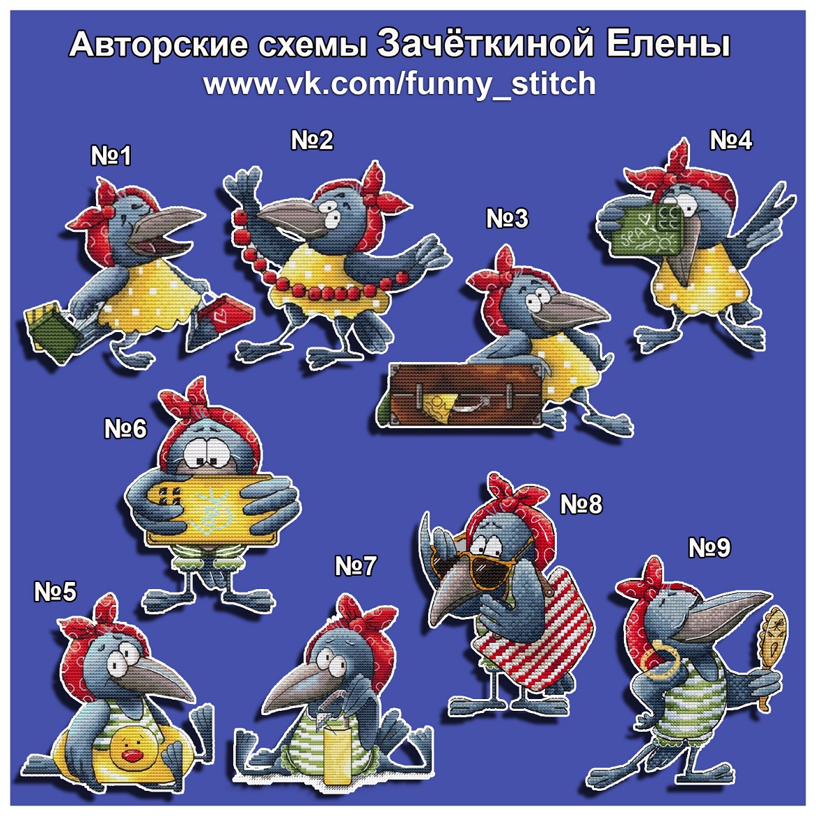 Основы с перфорацией для вышивки забавных ворон отпускниц по авторской схеме Елены Зачёткиной