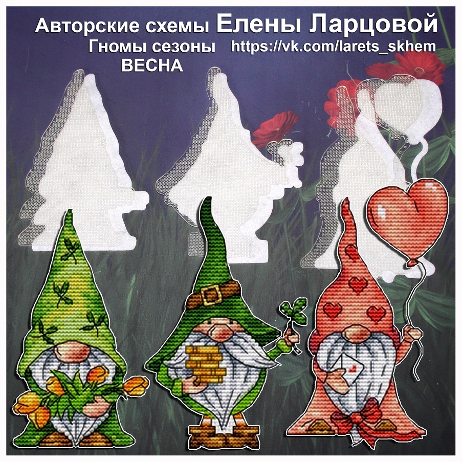 Основа с перфорацией для вышивки забавных гномиков по авторской схеме Елены Ларцовой