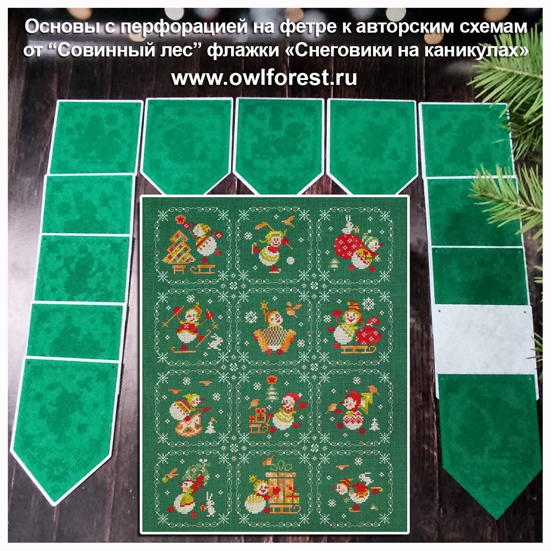 Основы с перфорацией на фетре для вышивки 12-ти флажков от «Совиный лес»