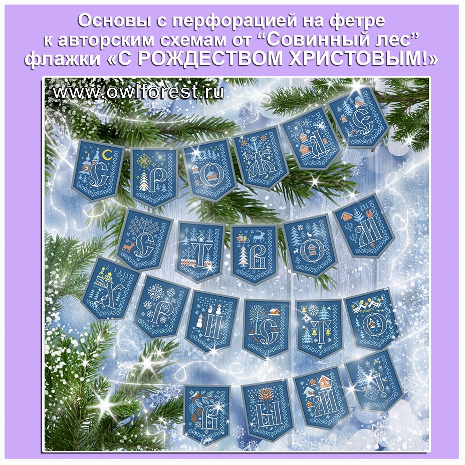 Основы с перфорацией на фетре для вышивки 21 флажка от «Совиный лес»