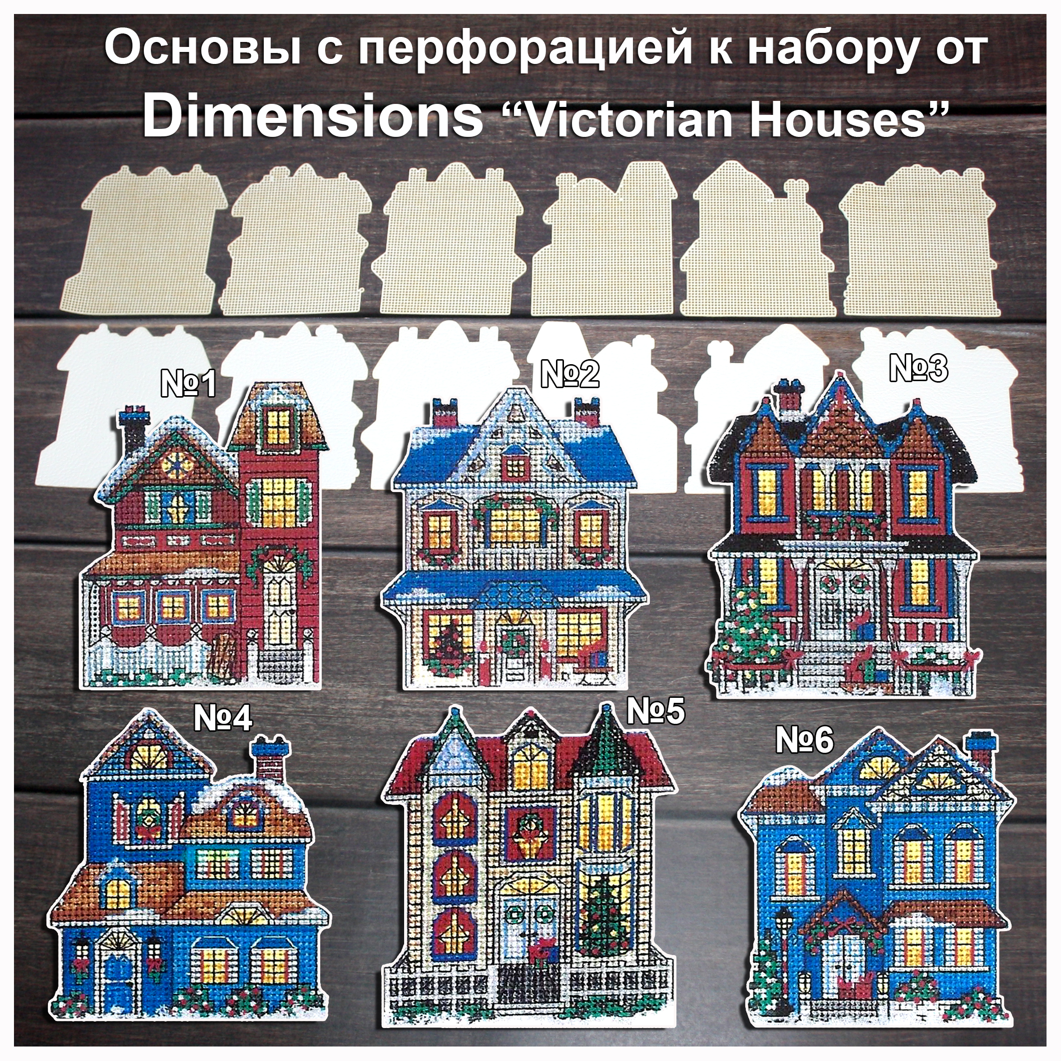 Основа с перфорацией для вышивки новогодних ретро домиков к наборам от Dimensions Daydreams «Victorian Houses»